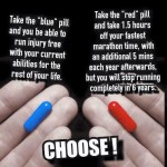 This came across my Facebook feed a couple of weeks ago. I thought it was interesting to think about, and the reaction comments were even more interesting! The text reads: Take the “blue” pill and you will able to run injury free with your current abilities for the rest of your life Take the “red” pill and take 1.5 hours off your fastest marathon time, with an additional 5 mins each year afterwards, but you will stop running completely in 6 years. For those if you that don’t recognize it, the Red Pill/Blue Pill choice is a reference to[…continue reading]