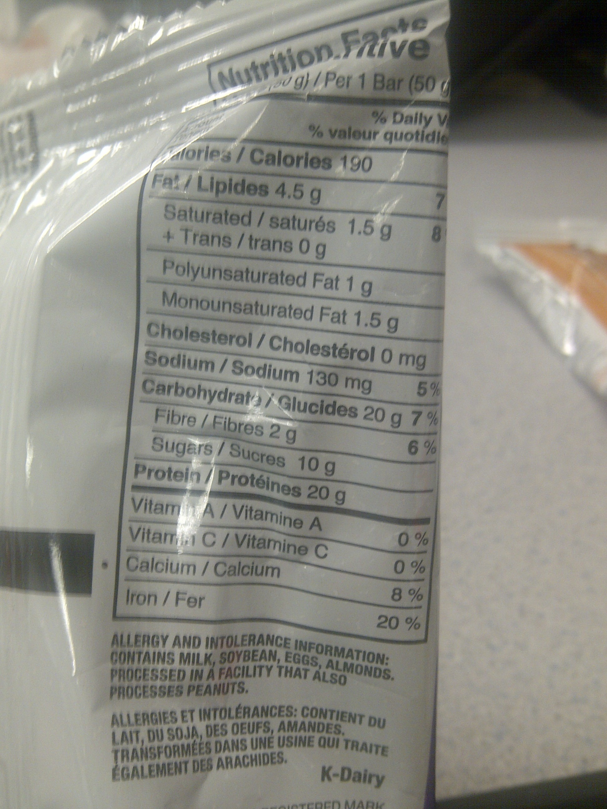 The nutritional info is encouraging. 20 grams of protein with only 190 calories! And that calorie number isn’t because of artificial sweetners!