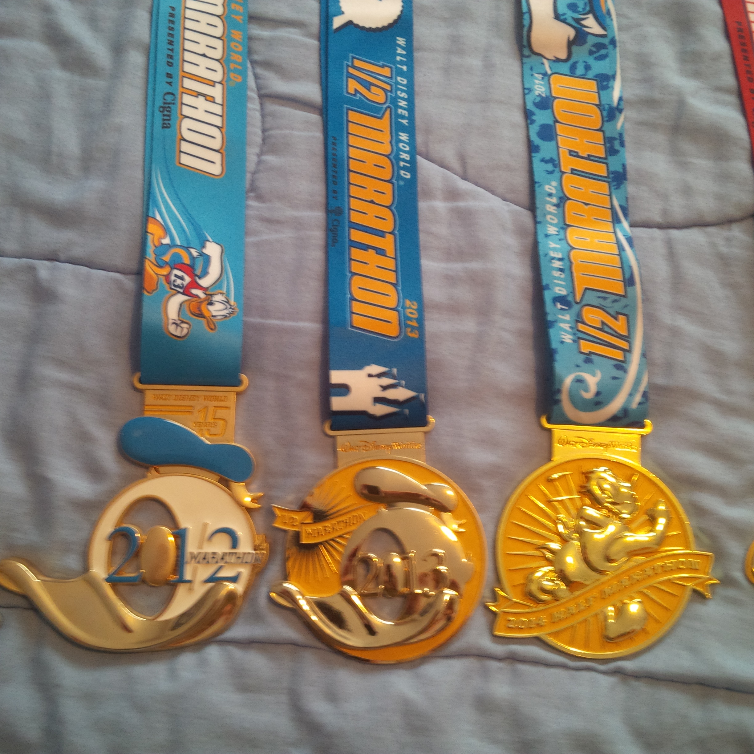 Walt Disney World Half-Marathon Medals from 2012, 2013, and 2014