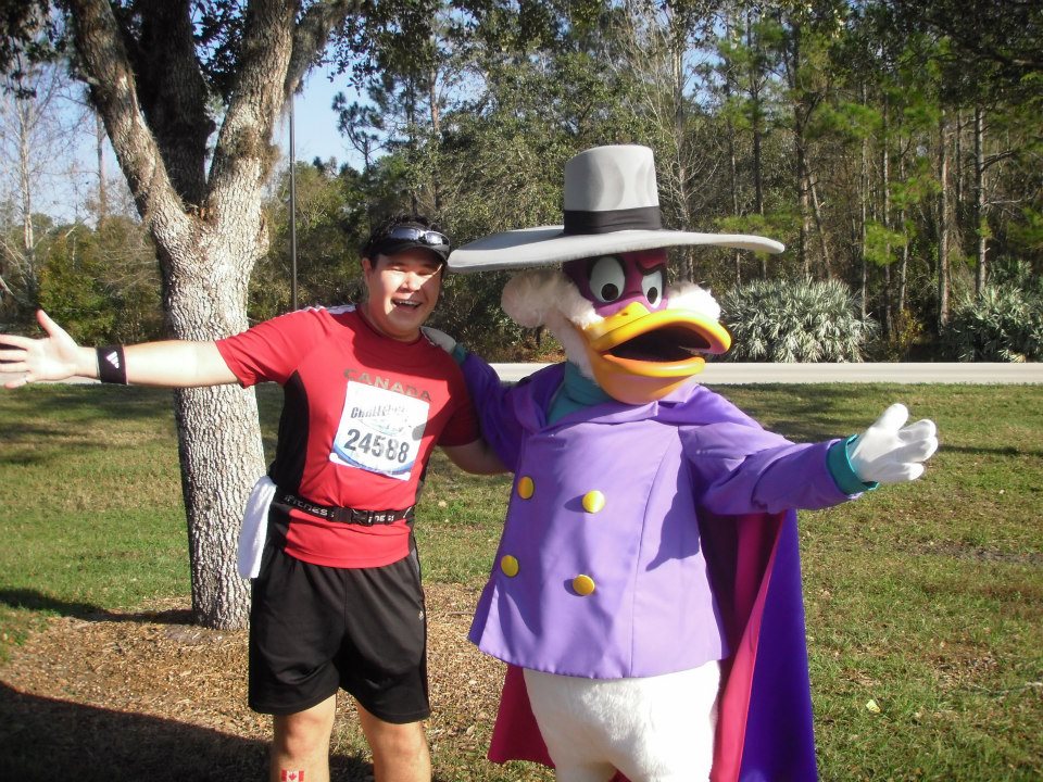 Who’s Darkwing Duck? A Saturday morning cartoon character from my childhood I almost forgot about. He’s something of a cross between Donald Duck and Batman, with A LOT of other comic super-hero references thrown in. Oh, and he’s a Disney character. My love of Disney is well-documented. In fact, I even met Darkwing Duck during the Walt Disney World Marathon in 2013!