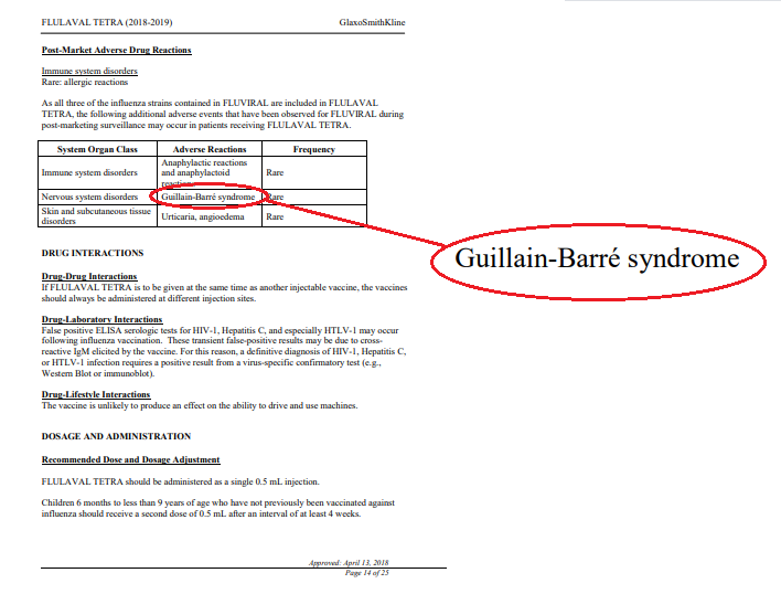 So, could a flu shot or other vaccine trigger an auto-immune illness? Yes, the CDC confirms it. In fact, the detailed product monograph for a common brand of flu shot explicitly lists Guillain-Barre Syndrome and other “immune system disorders” as possible side effects.